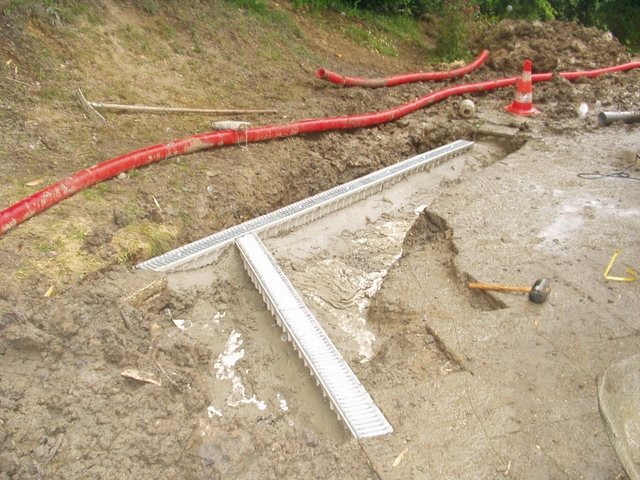 • Nous mettons en place des caniveaux, regards grilles et siphons pour capter les eaux de ruissellement.